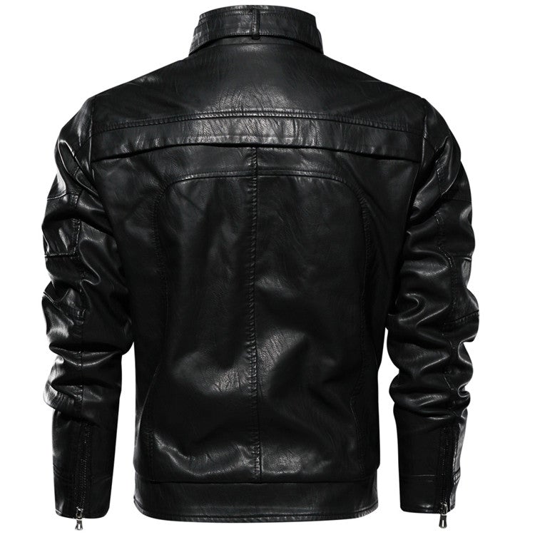 The closure type for this jacket is a zipper. This jacket is made from Faux PU leather.